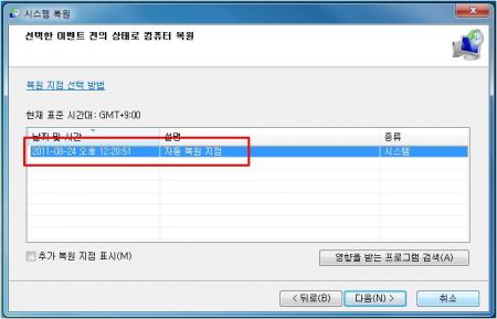 ③ 복원지점을 선택합니다. 컴퓨터에 따라 복원지점이 여러 개 나타날 수 있습니다. 이용자가 자신의 컴퓨터가 아무 문제 없이 작동했던 지점을 선택하면 됩니다.