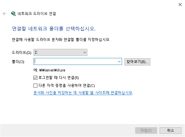 1. 네트워크 드라이브 연결 선택